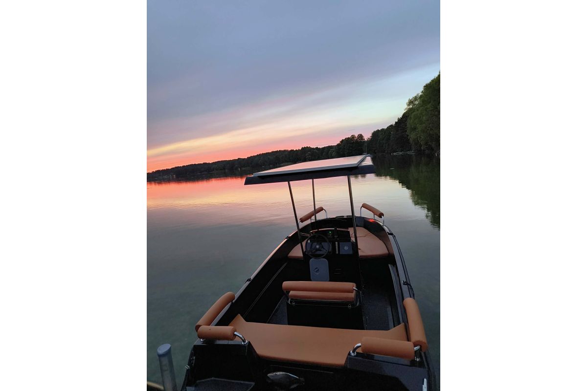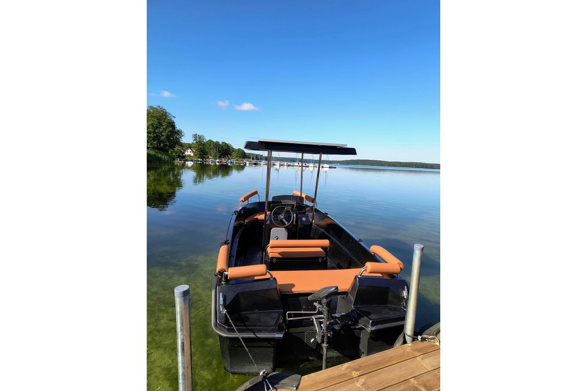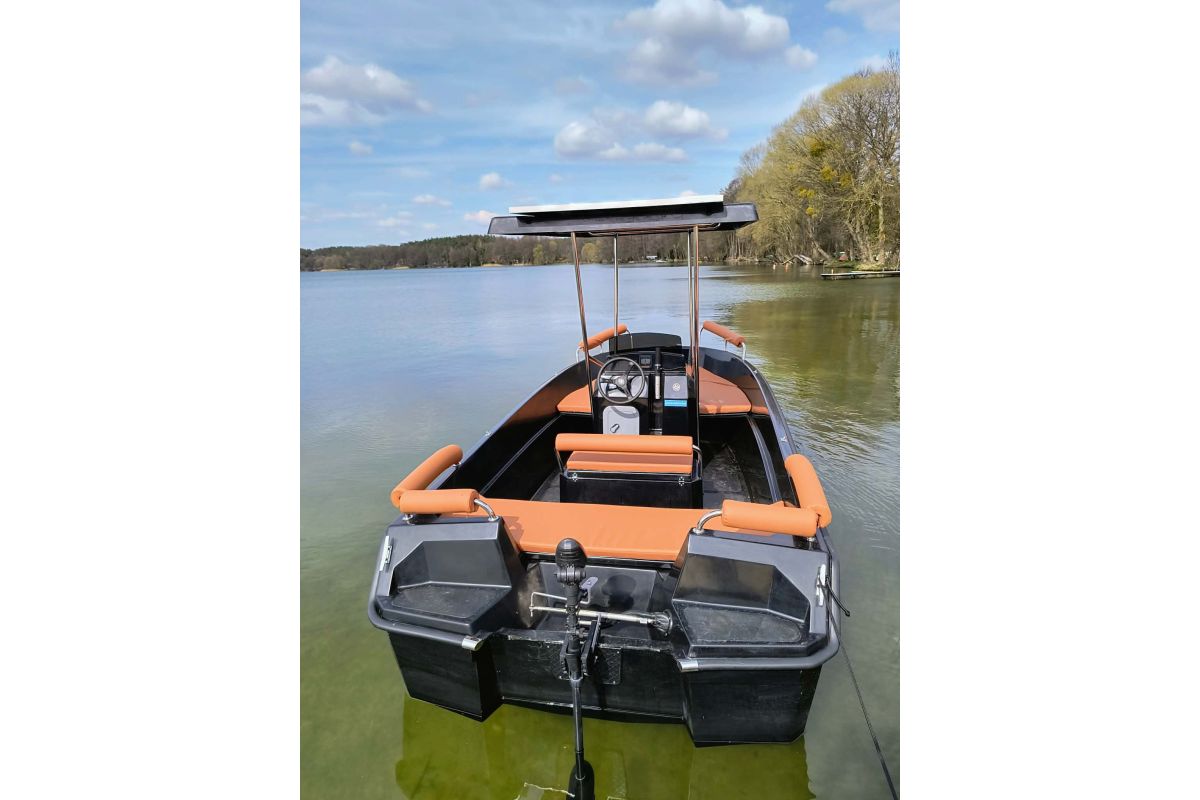 Na sprzedaż łódka elektryczna 7-osobowa z panelami słonecznymi. . Wygodna i komfortowa. W zestawie komplet wodno-plamoodpornych poduszek i komplet obszyć na relingi oraz możliwość dokupienia dostawianego pokładu leżącego również z poduszkami w zestawie
