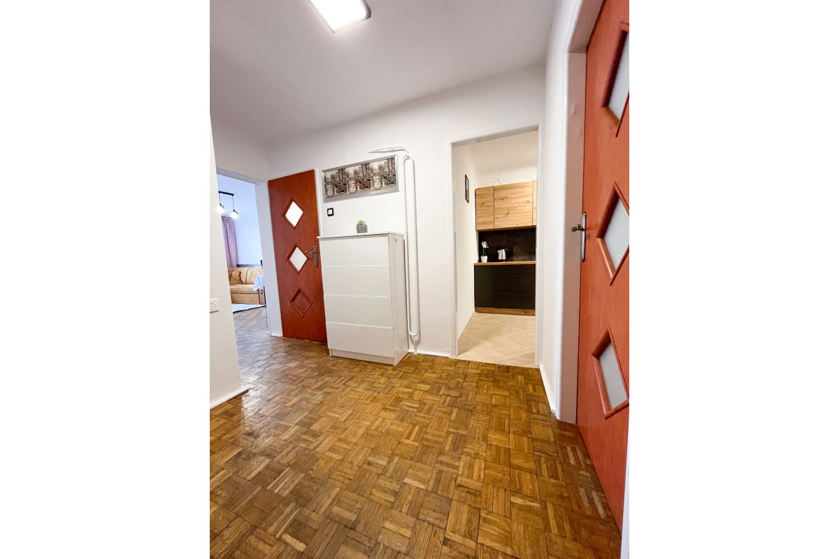 Lokalizacja mieszkania jest bardzo dogodna. W bliskim sąsiedztwie znajdują się sklepy, restauracje, szkoły, przedszkola, apteki w tym galeria handlowa oraz inne punkty usługowe. Dobrze rozwinięta infrastruktura komunikacyjna umożliwia szybkie i wygodne poruszanie się po mieście.