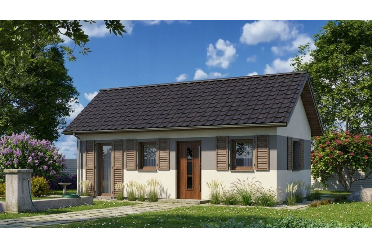 Domek wykonany jest z certyfikowanej konstrukcji szkieletowej, co przekłada się na jego trwałość i stabilność. Technologia ta zapewnia również bardzo dobre właściwości termoizolacyjne. Istnieje możliwość wykonania ocieplenia, dzięki czemu domek sprawdzi się zarówno jako letniskowy, jak i całoroczny.